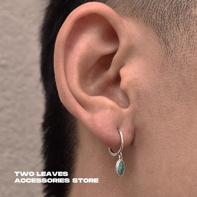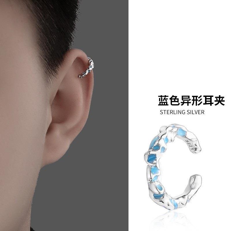 s925 silver needle earrings men's high-grade mint green ear buckle ear clip without piercing single niche design men's earrings