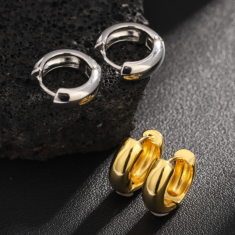 Simple Ring Ear Buckle Men's Geometric Ring Copper Plated High-end Sense Accessories Women's Simple Niche Personality Fashion Ear Pole Jewelry