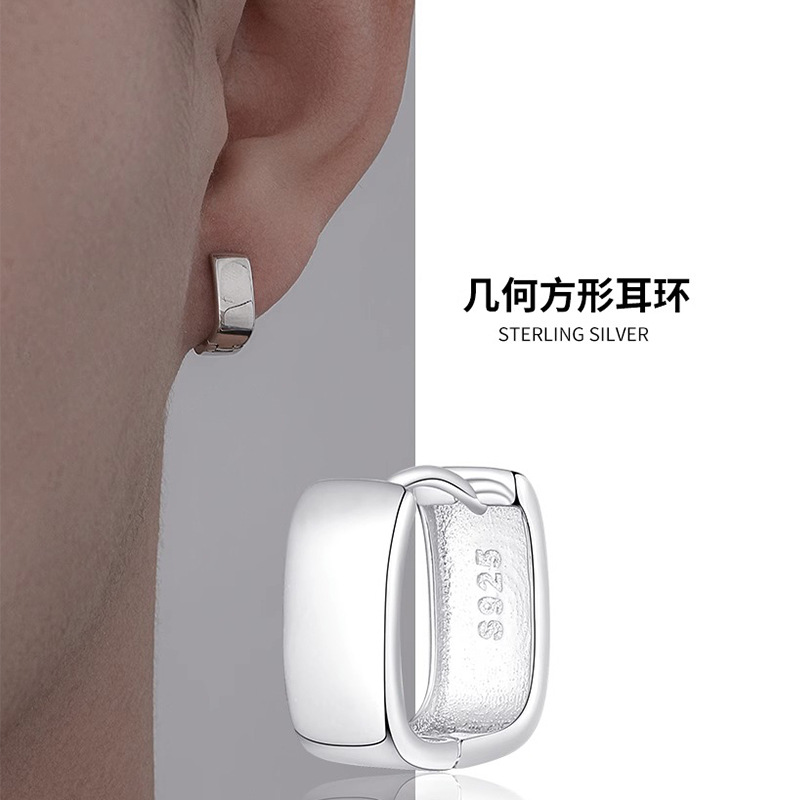 Advanced Sense Simple Square Ear Ring Ear Buckle All-match Cold Wind Earrings Men's Niche Design Sense Men's Ear Pole Ear Buckle