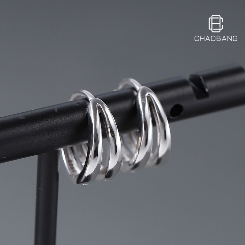 Cross-Border Haoshi Earrings for Men, Fashionable Light Luxury Style, High-End Niche Personality, Minimalist Design Hoop Earrings for Women