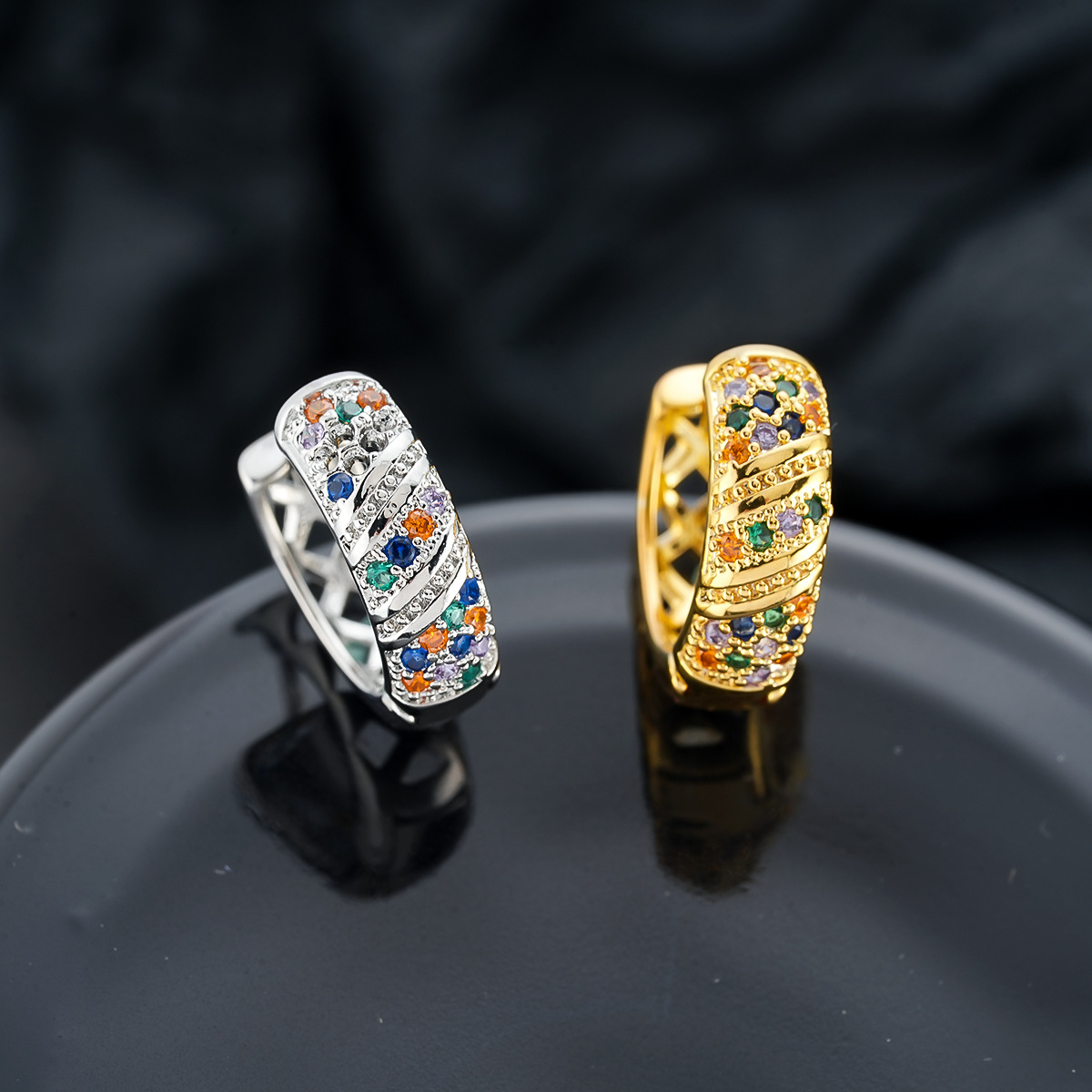 Colorful zircon earrings men's fashion design sense light luxury full diamond ear buckle women's high-end all-match jewelry earrings wholesale