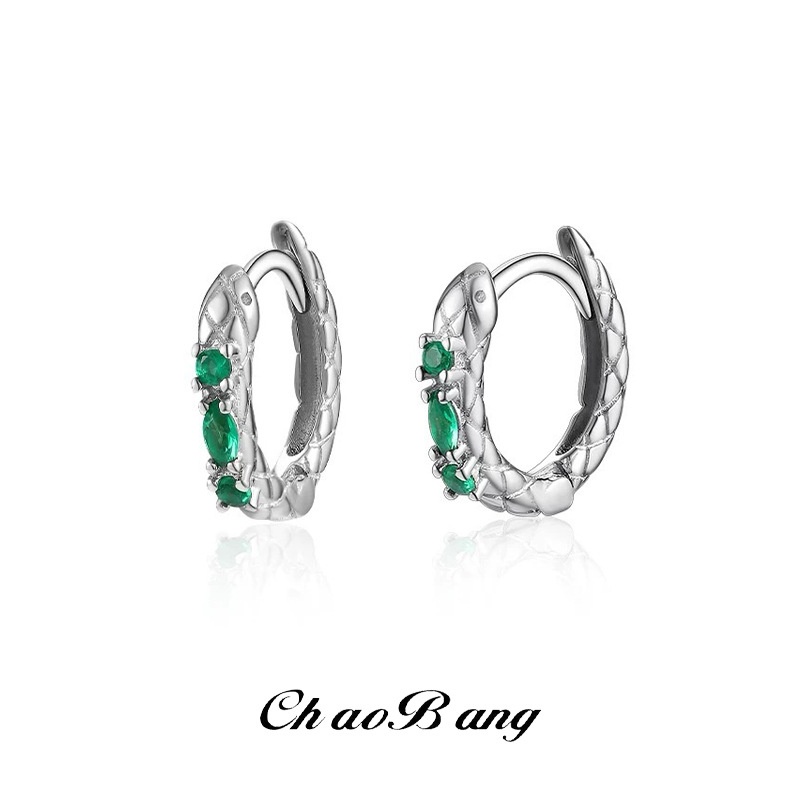 Cross-Border Vintage Green Zircon Snake-Shaped Earrings for Men, Niche Light Luxury Earrings, Unique Versatile Accessories, Fashionable Versatile Accessories