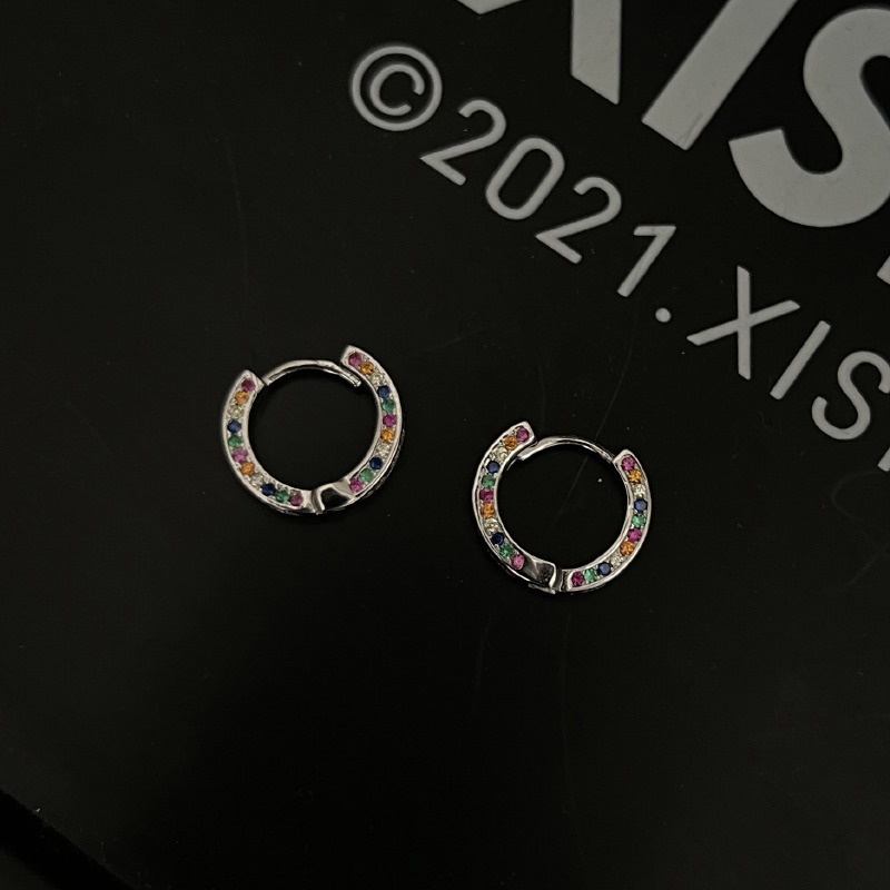 Rainbow Ear Buckle Exquisite Set Color Zircon Earrings Men's Artistic Simple Personality Trendy Retro Punk Hip-Hop Earrings