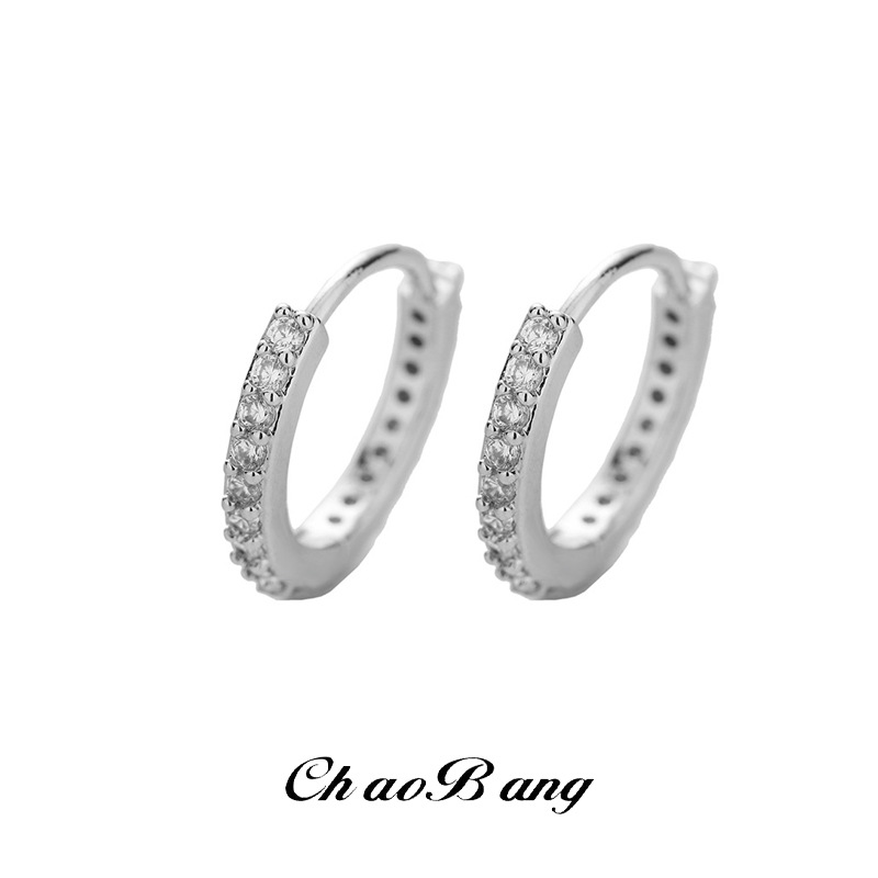 Full Diamond Plain Hoop Earrings for Men, Trendy Fashion European and American Versatile Simple Light Luxury Personalized Design High-End Earrings for Women