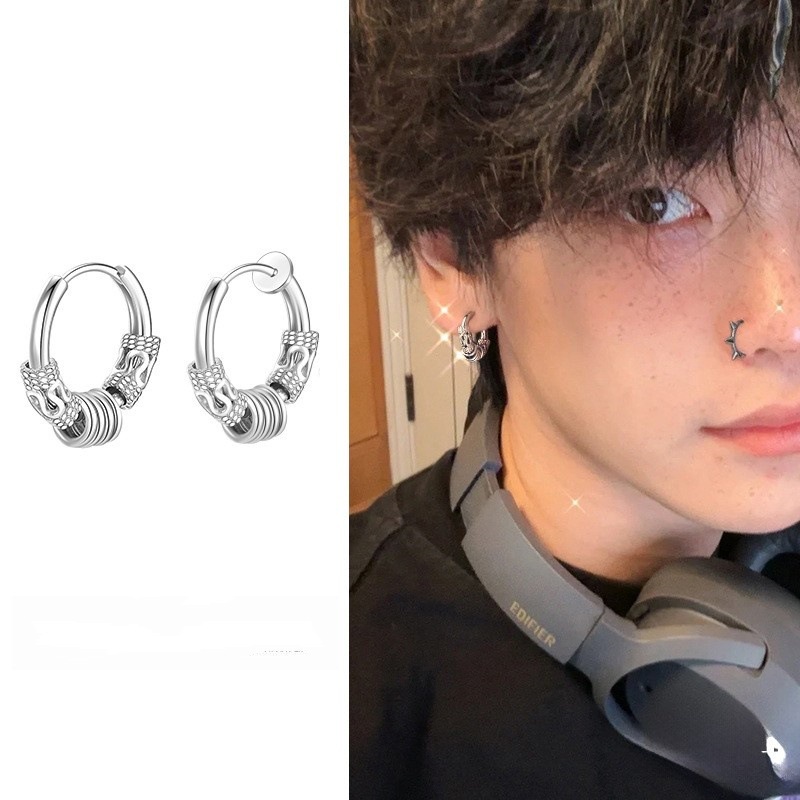 Men's Silver Ear Stud Fashionable Personalized Trendy Men's Cool Style ins Internet Celebrity Simple Vintage Single Earrings