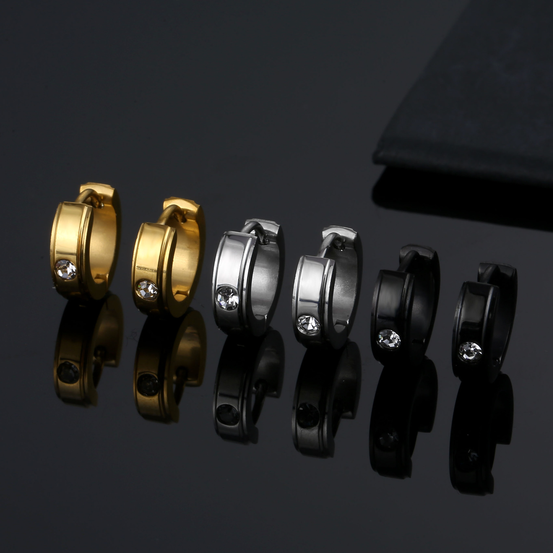 Amazon Cross-Border Fashion Diamond-Encrusted Titanium Steel Earrings for Men, European and American Trendy Personalized Titanium Steel Earrings, Earrings for Men and Women