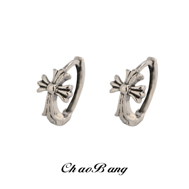 Cross-Border Earrings for Men, High-End Craftsmanship, Cross-Shaped Vintage Design, Non-Fading, New Simple Jewelry