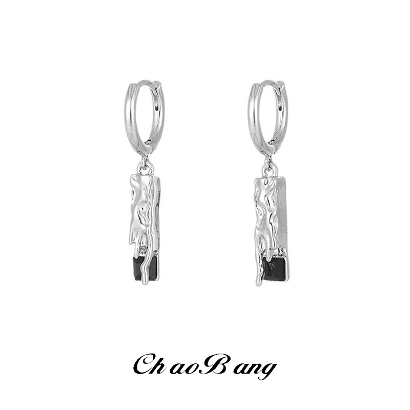 Men's silver-plated earrings high-grade black thick earrings niche design light luxury silver earrings anti-allergy boys earrings