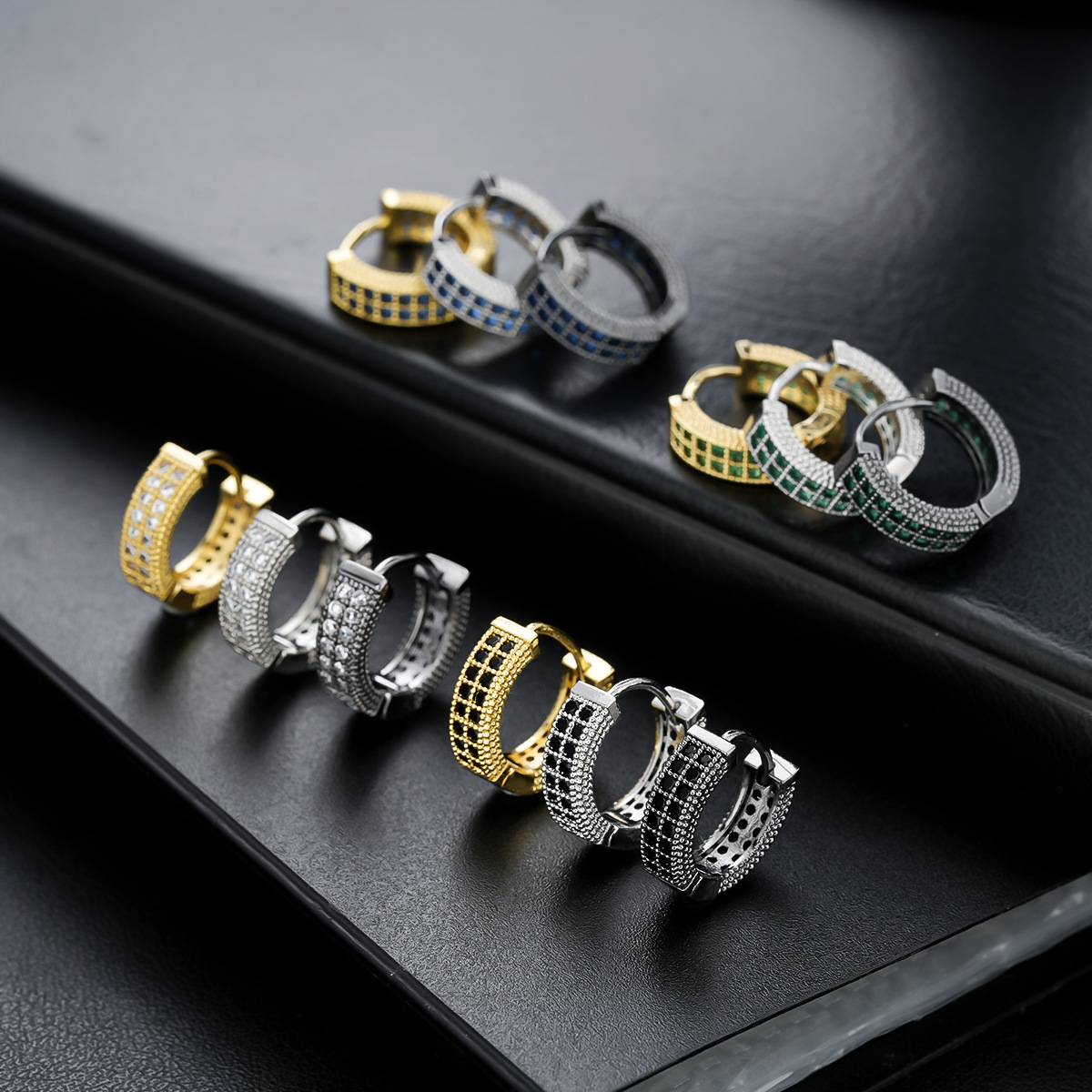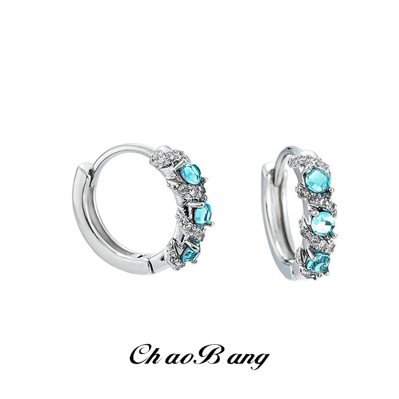 Cross-Border Zircon Earrings for Men, Fashionable and Trendy, Personalized Diamond Ear Cuffs for Women, Emerald Light Luxury High-End Ear Jewelry