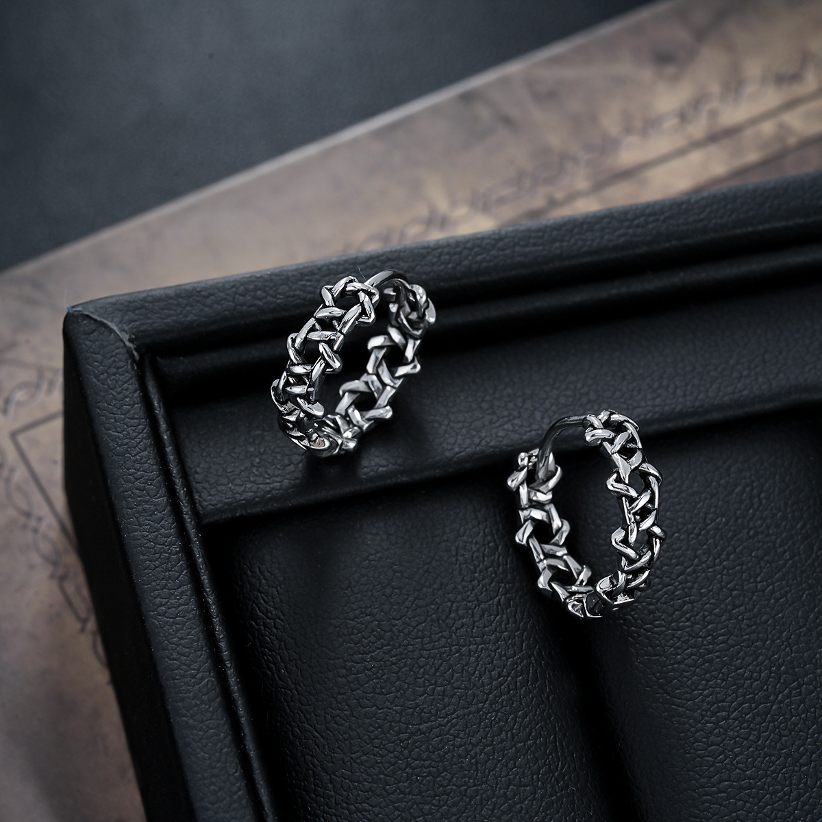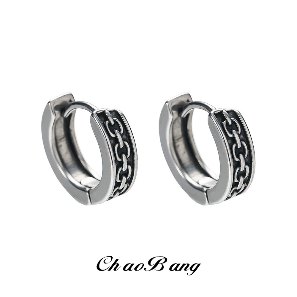 Cross-Border Chain Pattern Earrings for Men, Non-Fading, European and American Fashion, Versatile, Personalized Earrings, Retro Street Style Earrings