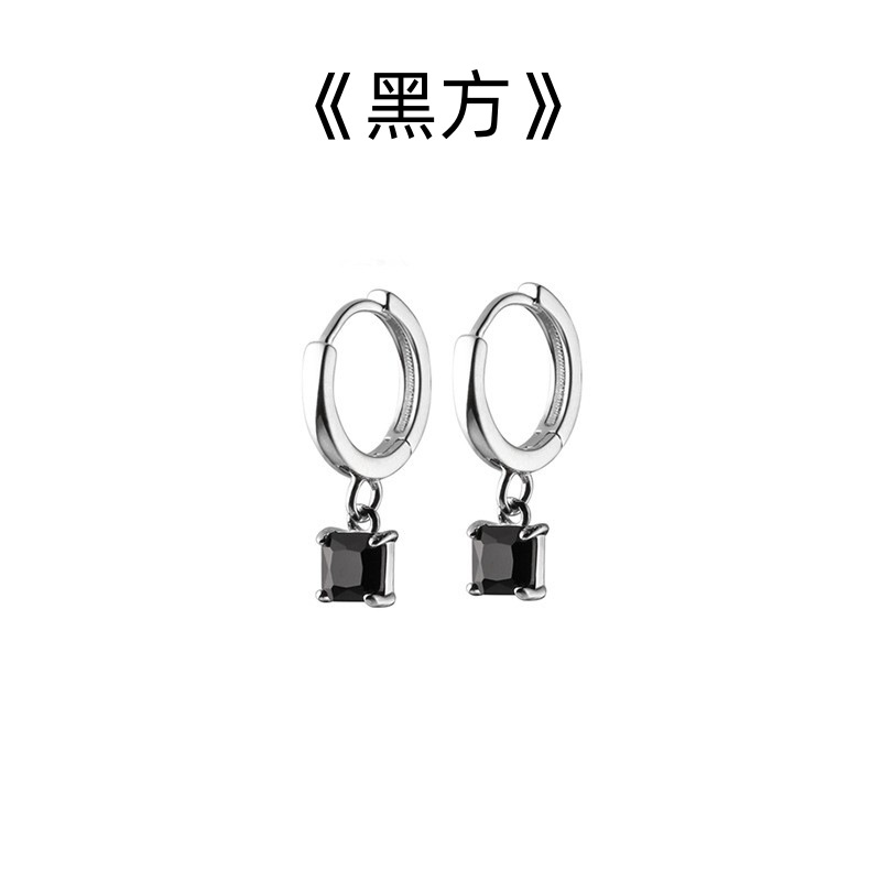 Black Square 925 silver needle earrings female black zircon inlaid pendant earrings male gift all-match simple all-match