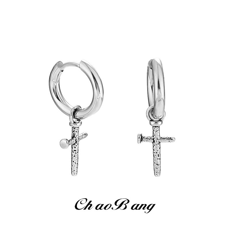 Earrings Men's Cross Personality Retro High-end All-match European and American Earrings Women's Light Luxury Summer Simple Accessories Jewelry