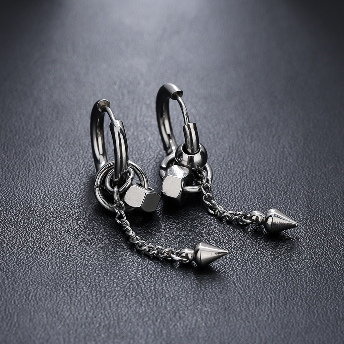 Conical Long Chain Earrings for Men, Titanium Steel, Non-Fading, High-End, Versatile Ear Clips for Women, Niche Design Ear Jewelry Wholesale