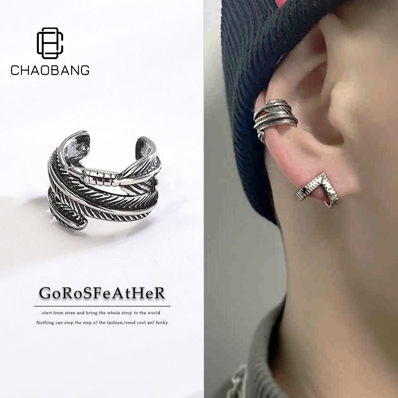 Feather Punch-free Earrings Men's Simple Fashion Single Pit-free Ear Clip Cold Style High-end Trendy Niche Distinctive Ear Buckle