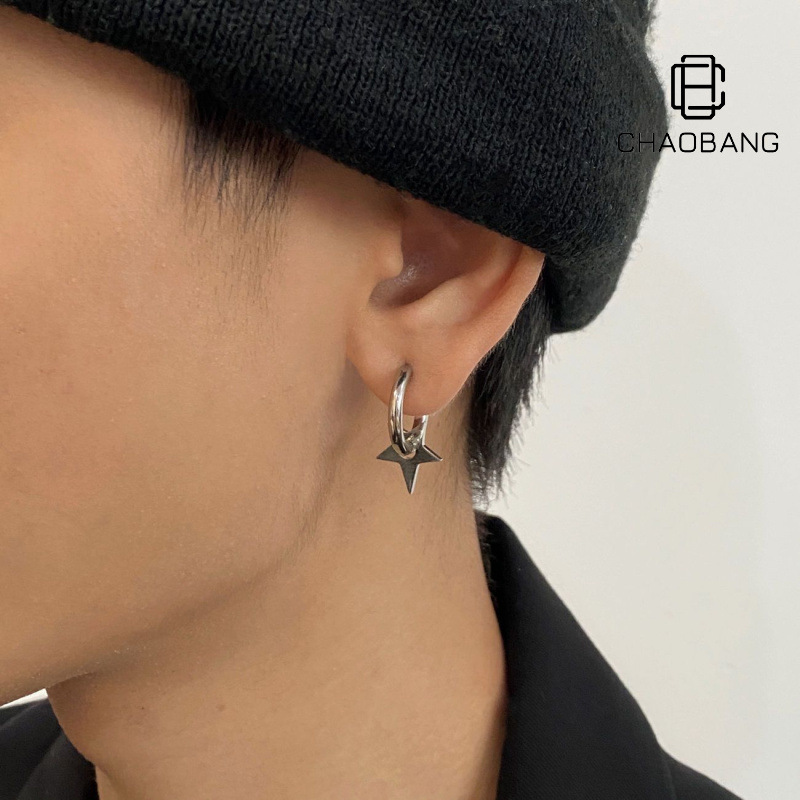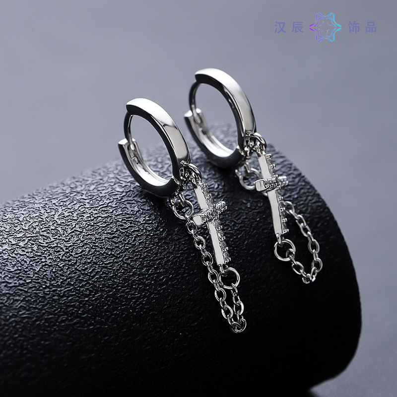 Earrings Men's Trendy Ins Cold Style Distinctive Hip-hop Hip-hop Ear Jewelry Trendy Men's Ear Buckle Cross Earrings Men