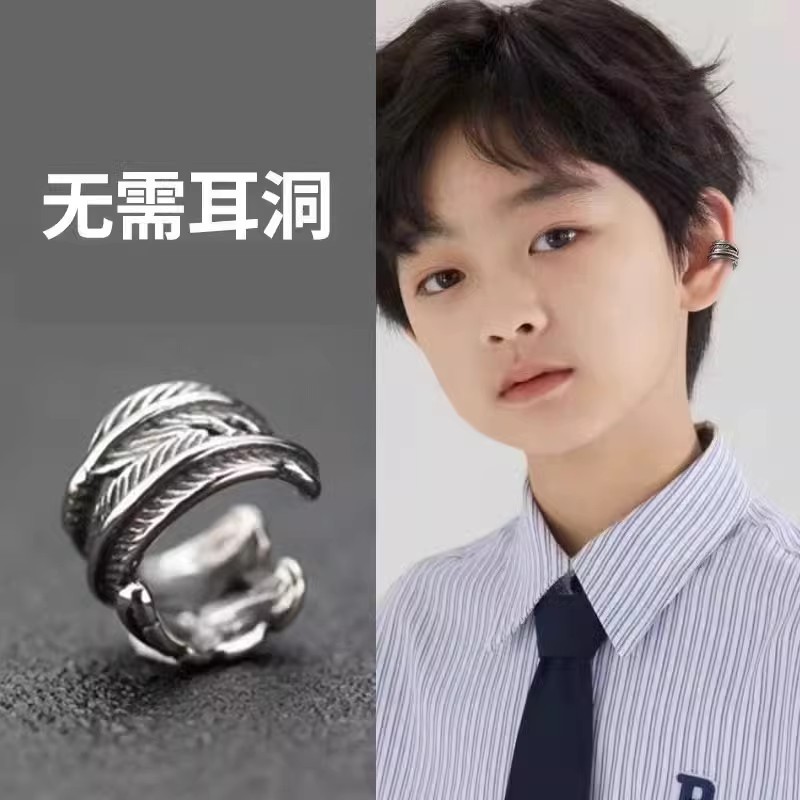 Men's Personality No Ear Holes Ear Clips Men's Advanced Sense Niche Trendy Men's Punch-Free Single Boys Ear Clips Earrings