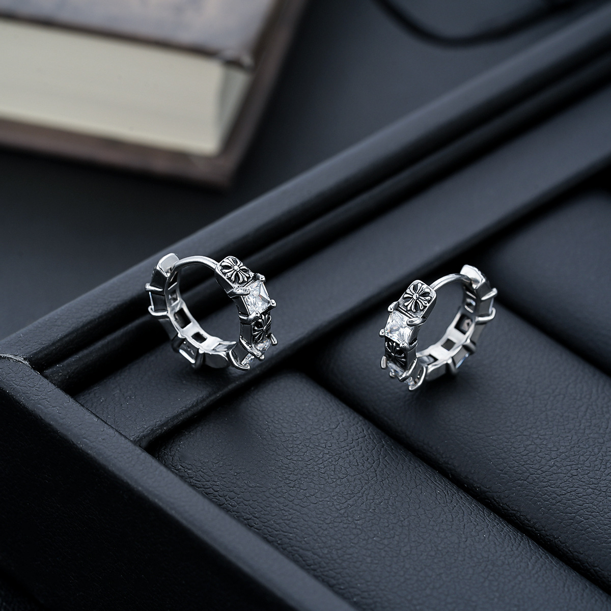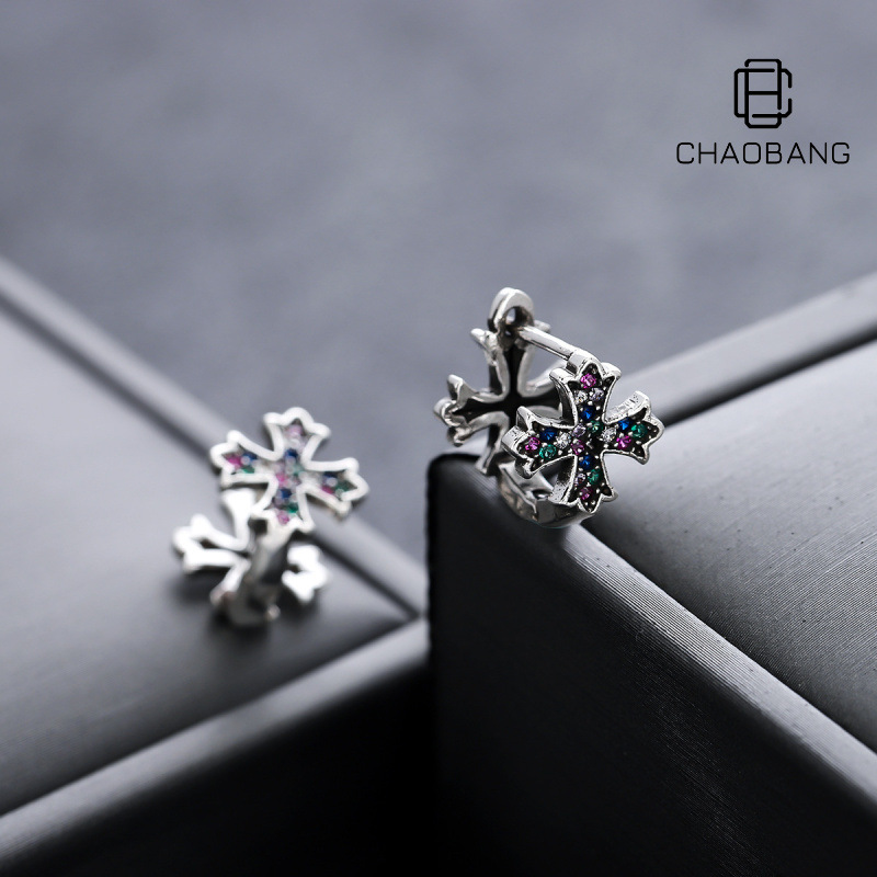 Cross White Zircon Earrings Men's Retro Carved Medieval Earrings Women's European and American Fashion Trendy Ear Jewelry Wholesale