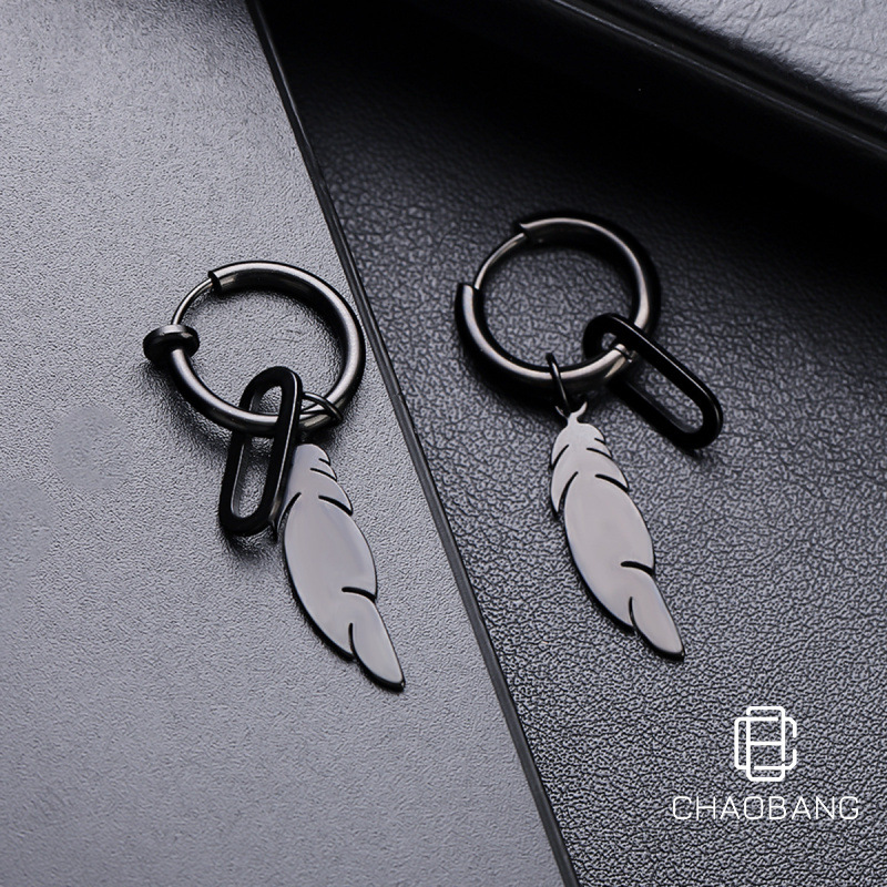 Feather Earrings Men's Personality Design All-match New Earrings Women's Summer Fashion Simple Accessories Jewelry