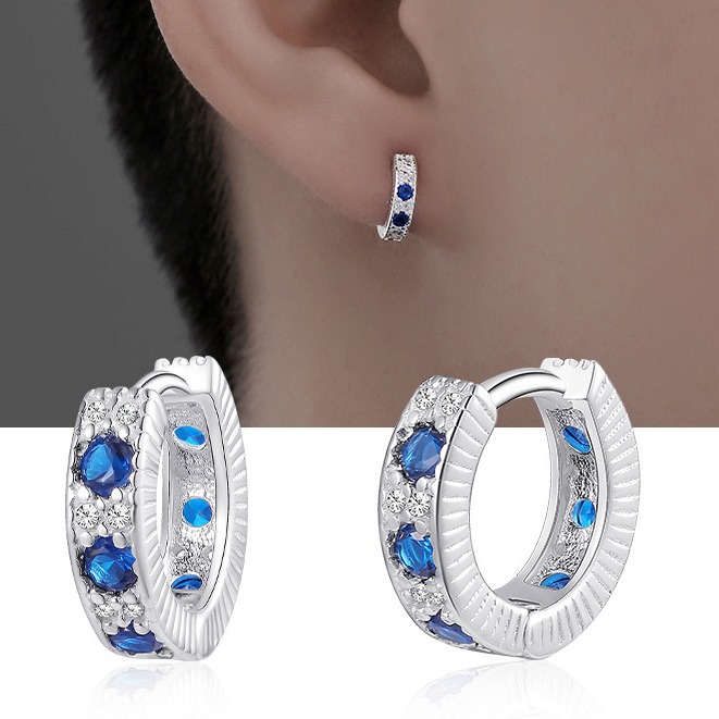 Zircon Earrings for Men, Fashionable, High-End, Versatile, Simple Earrings, Accessories, Women's Trendy Accessible Luxury Niche Blue Earrings Jewelry