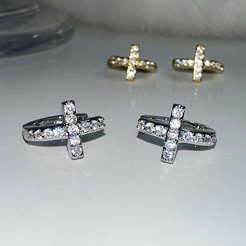 Cross Earrings Men's Diamond-encrusted Light Luxury High-end All-match Simple Earrings Women's Niche Personalized Hip-hop Accessories