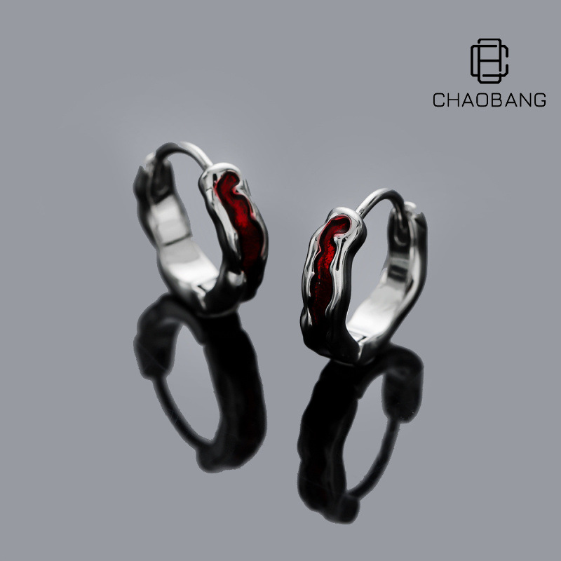 Red Venom Earrings Men's Irregular Texture Accessories Women's Light Luxury Niche Elegant Design Personalized High-end Jewelry