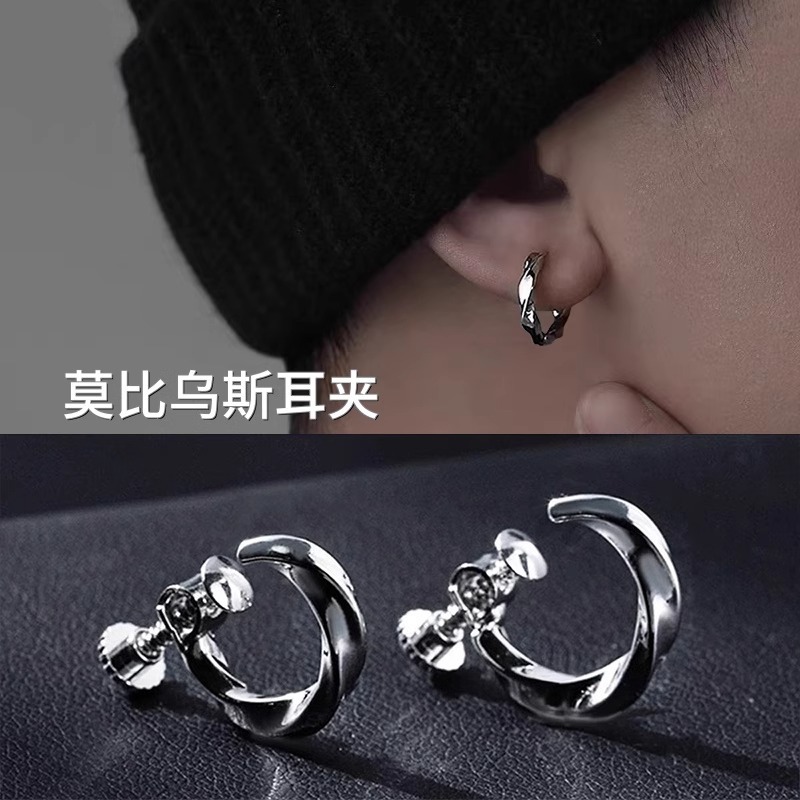 Mobius Ear Clip Men's Adjustable Screw Earrings Men's No Pierced Ears Handsome High-End Punch-Free Ear Clip Earrings