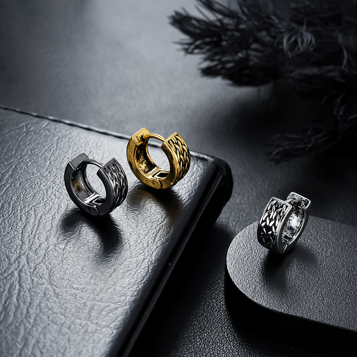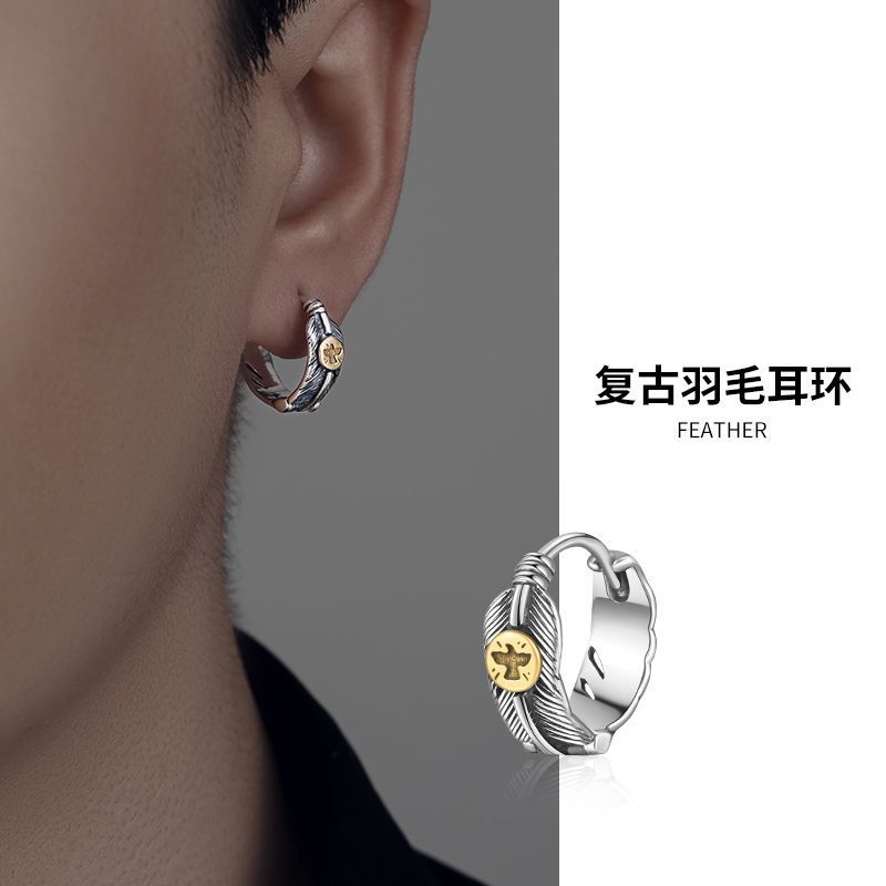 Earrings men's high-grade retro distressed feather earrings niche design single men's fashion street hip hop earrings