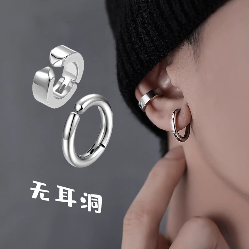 Titanium Steel Shaped Earrings Men's Simple Personality Jewelry Niche Design Ear Buckle Advanced Ear Accessories Color-free Accessories