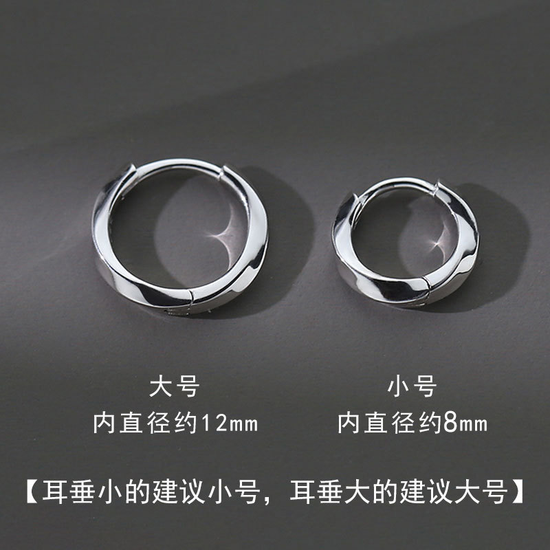 S925 Sterling Silver Solid Plain Hoop Earrings Japanese and Korean Fashion Simple High-End Small Earrings Ear Bone Hoop Men's and Women's Ear Buckles