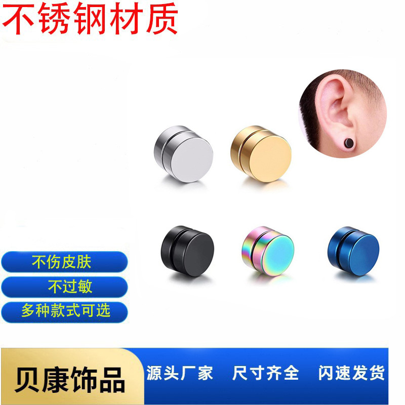 6-12mm No-Piercing Stainless Steel Magnetic Ear Clips for Men, Trendy Factory Wholesale Earrings