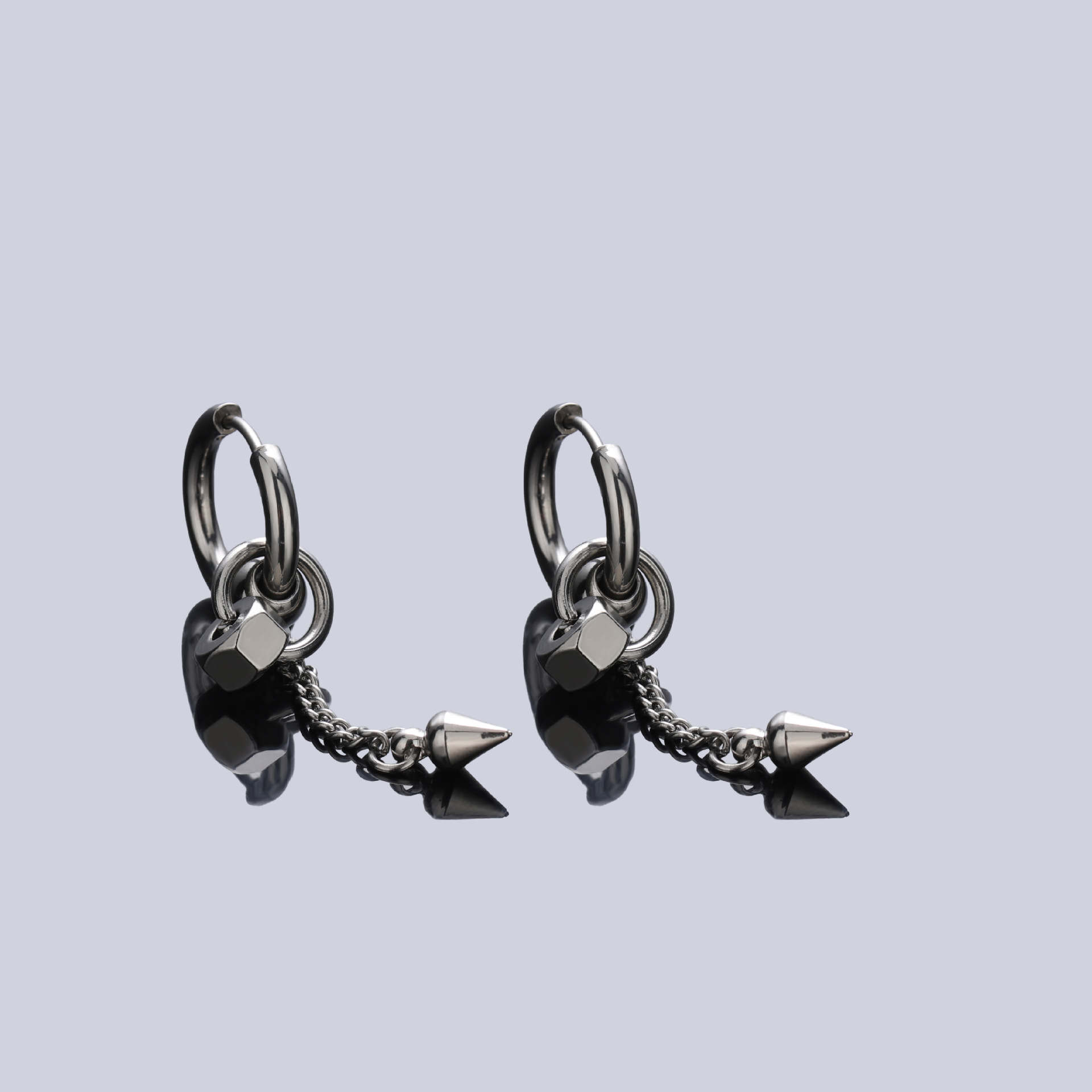 Conical Long Chain Titanium Steel Earrings for Men, Retro Niche Design, Non-Fading Ear Clips for Women, High-End and Versatile Ear Jewelry