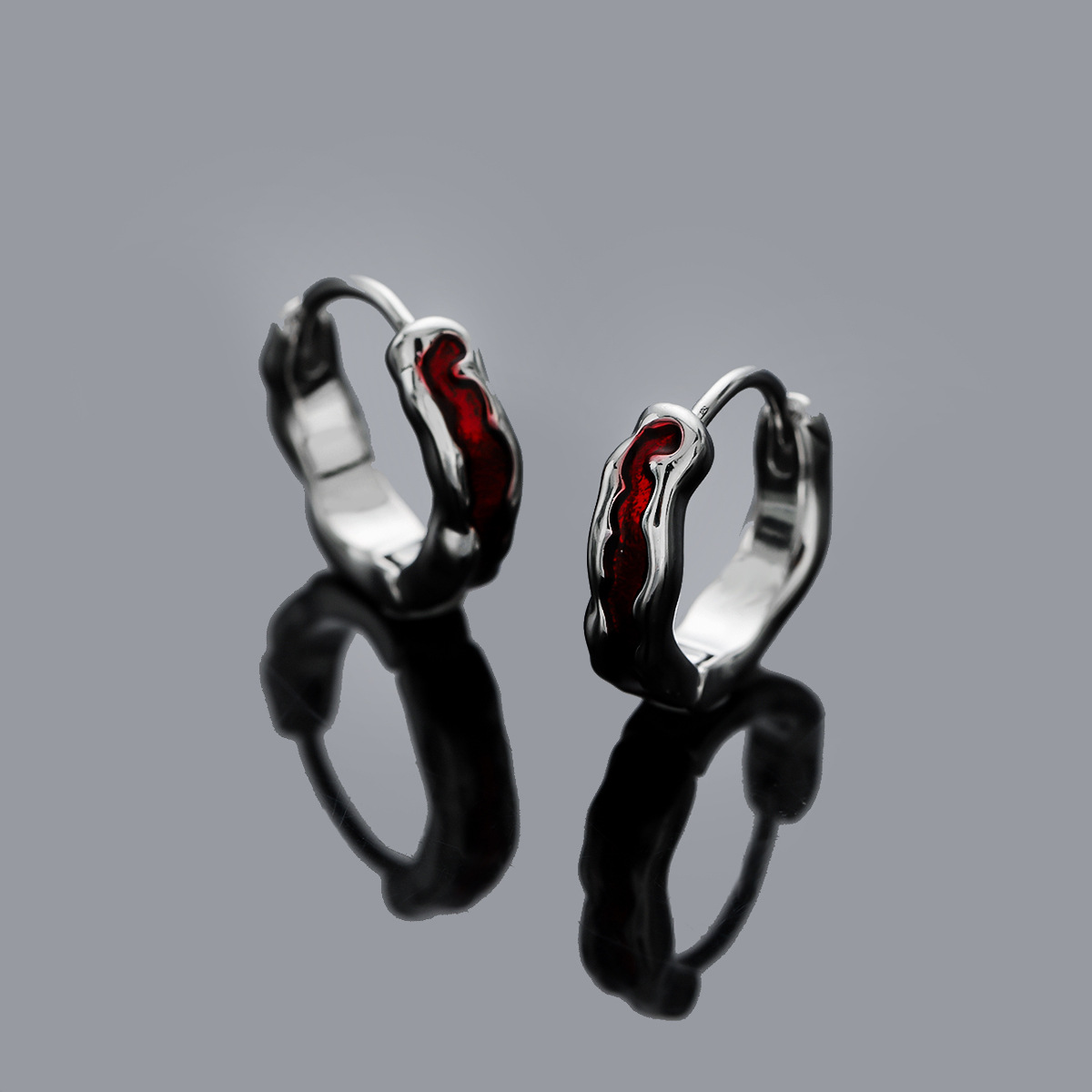 Red poison irregular texture earrings men's light luxury niche temperament design personality High sense accessories female jewelry