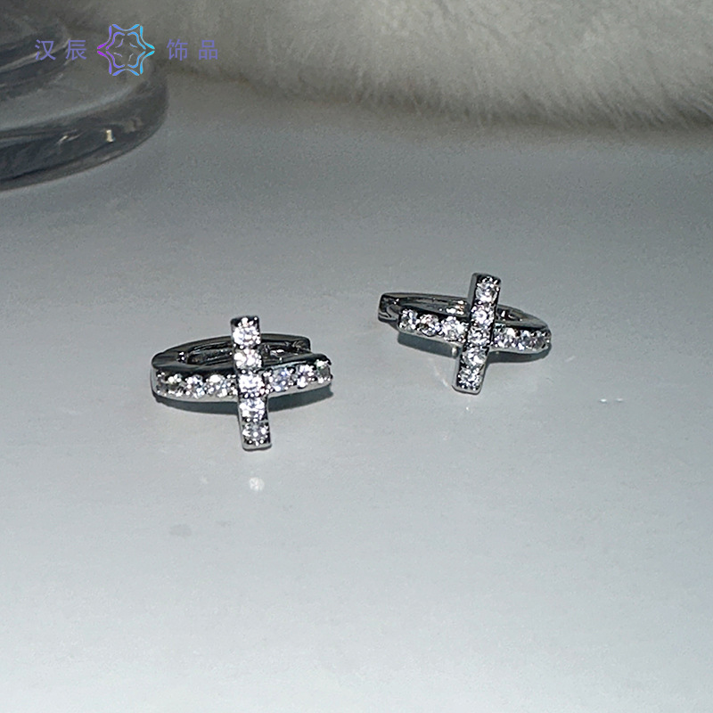 Cross zircon earrings men's non-fading fashion design temperament earrings women's high-grade all-match jewelry wholesale