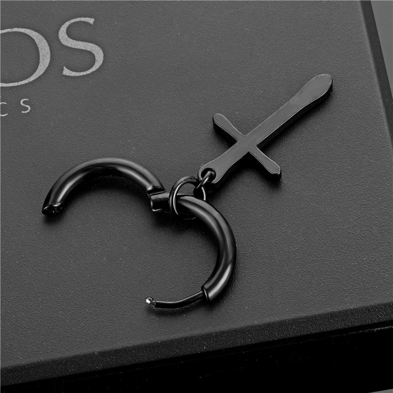 Cross Earrings Men's Titanium Steel Non-fading Fashion Design Retro Ship Anchor Earrings Women's High-grade All-match Jewelry