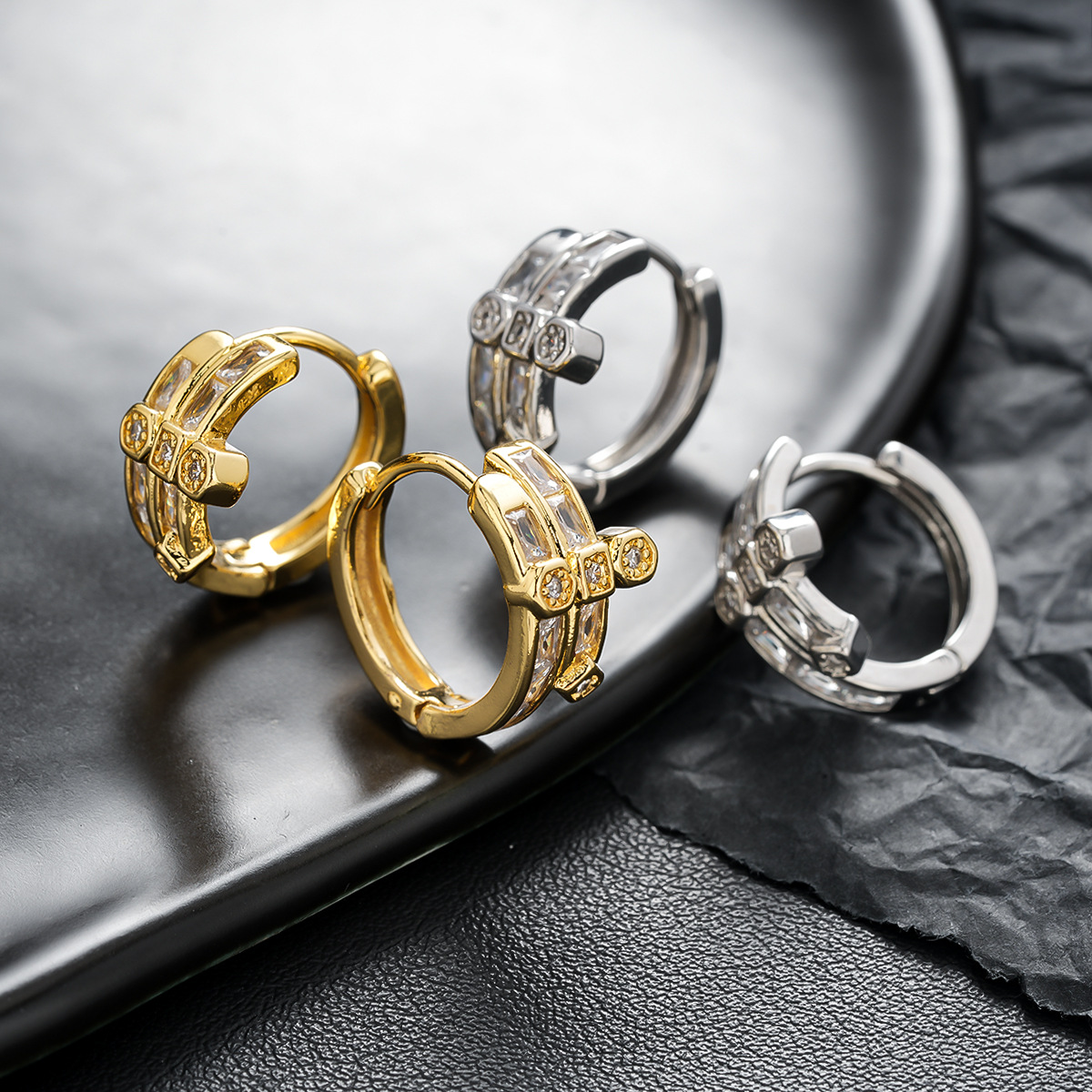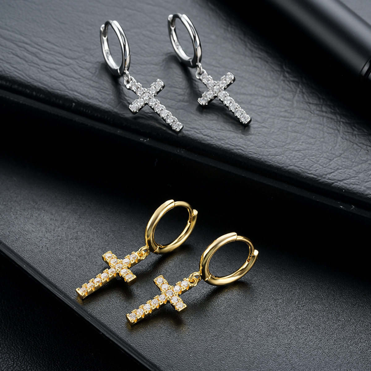 Cross Micro-Paved Diamond Earrings, Earrings, Men's European and American Cross-Border Classic Trendy Zircon Earrings, Feminine and Versatile Accessories