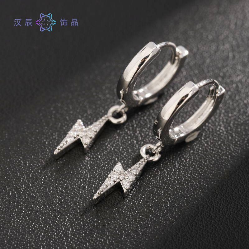Lightning Earrings for Men Zircon European and American Cross-Border Hip-Hop Versatile High-End Earrings for Women 2025 New Accessories Jewelry