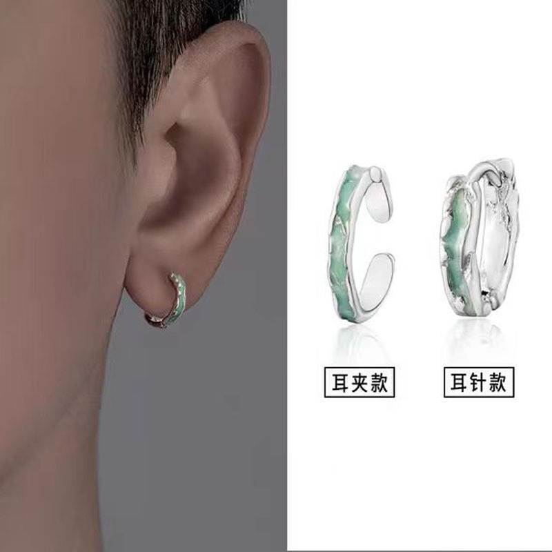 Mint Green Water Ripple Earrings, Unisex Style, Non-Pierced Ear Clips, Men's and Women's High-End Glue Asymmetrical Ear Buckles