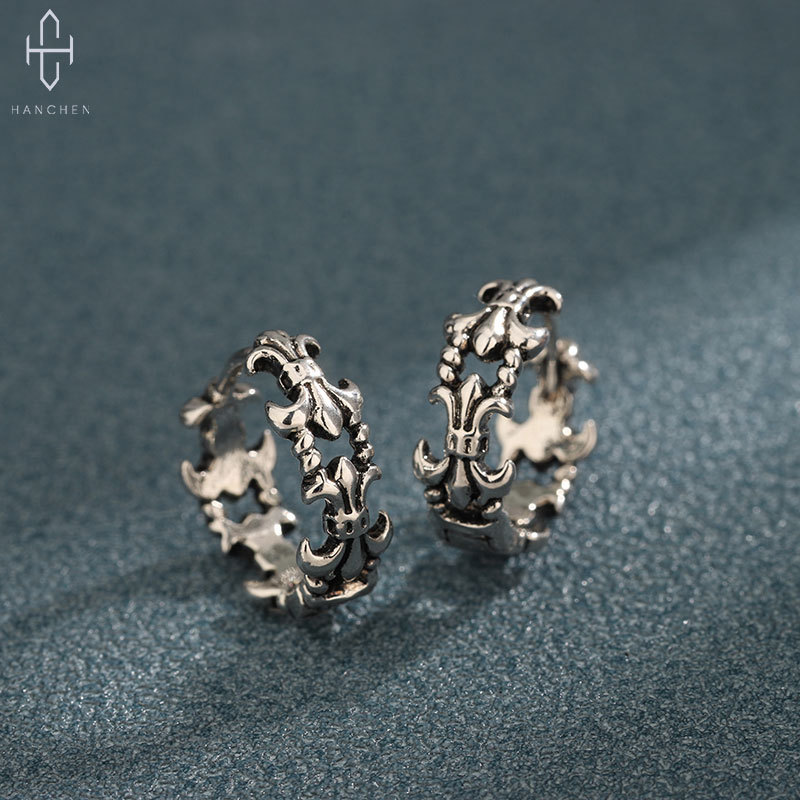 Hollow Cross Men's Earrings Silver-Plated Trendy Retro High-End Personalized Fashion Women's Earrings 2025 Hot Style