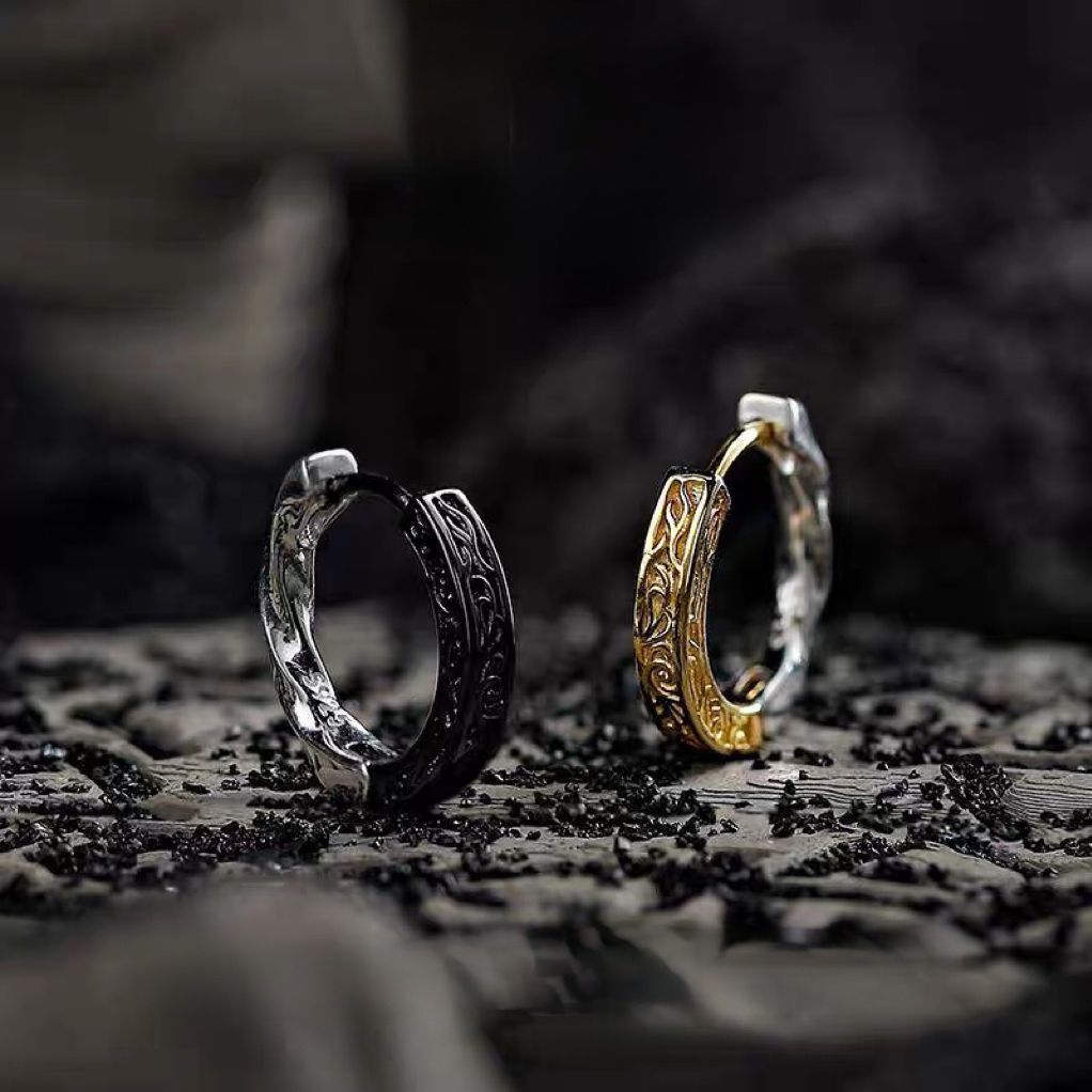 Moebius Earrings Men's High-end Sense Gold and Silver Contrast Geometric Ear Buckle Fashion Personalized Retro Tangcao Pattern Earrings