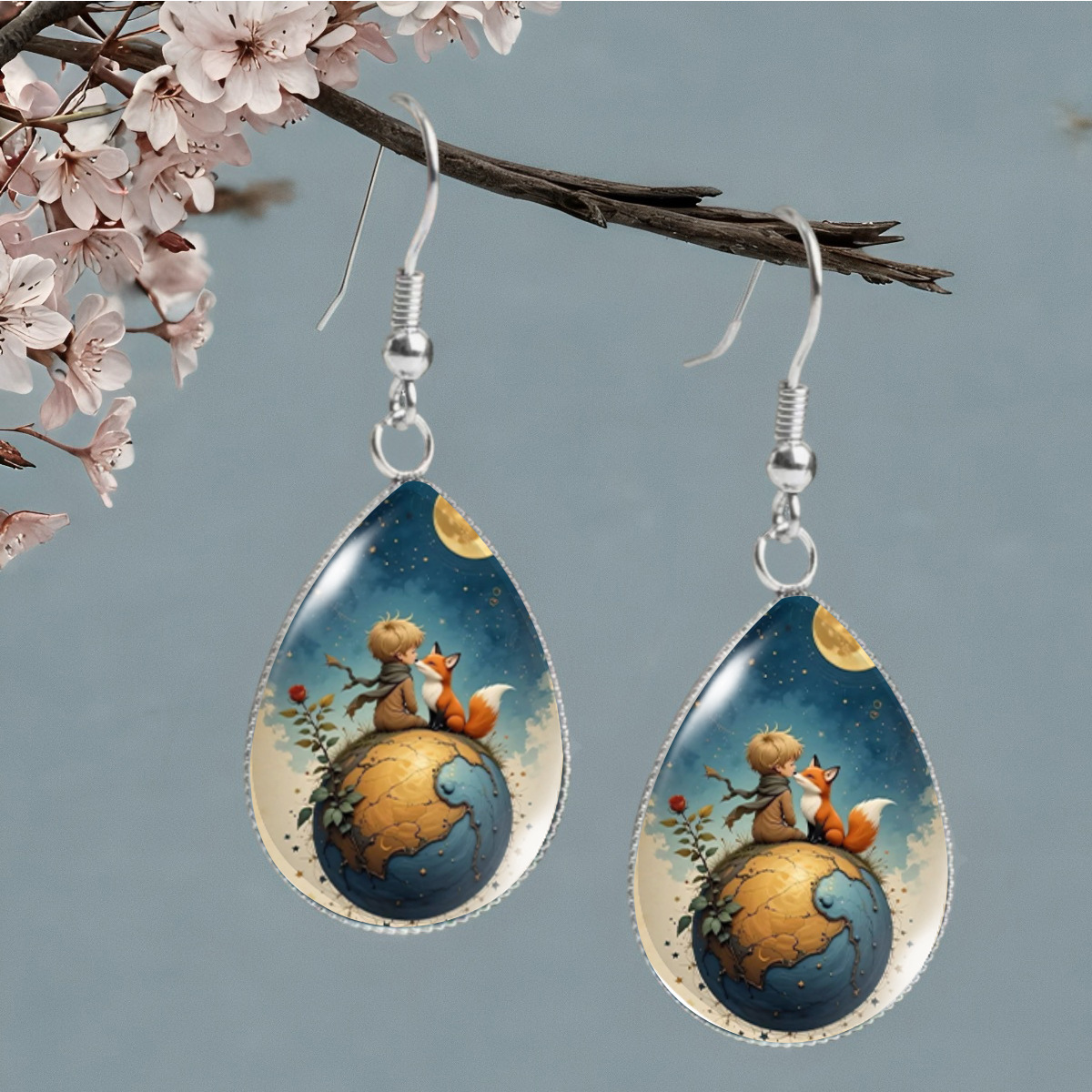 Cross-Border Little Prince Peripheral Time Gemstone Earrings Boy Fox Rose Water Drop Glass Jewelry Earrings Gift