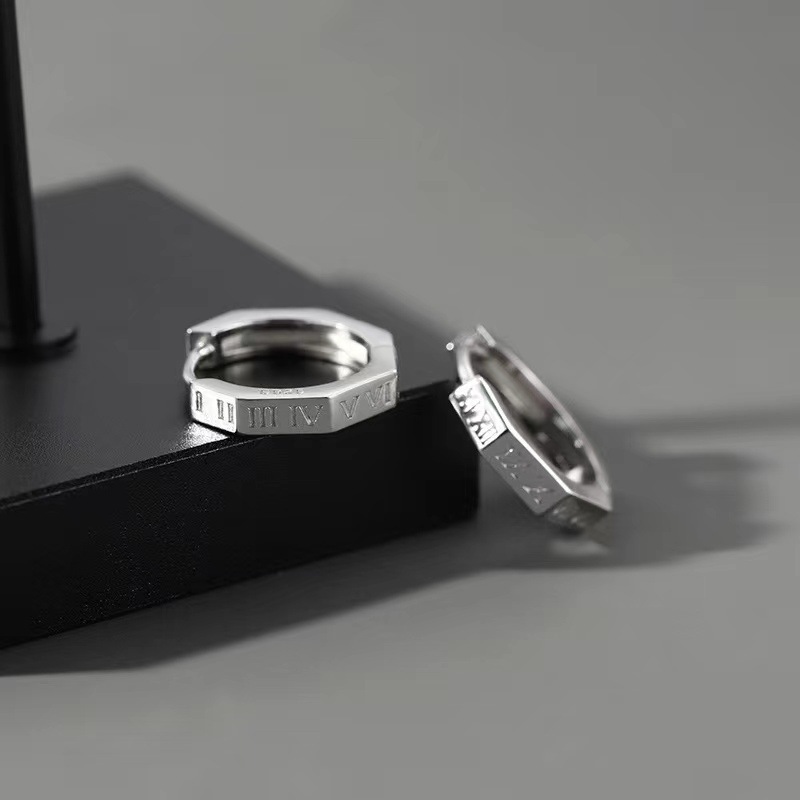 S925 Silver Earrings Men's Niche Design Personalized Simple Ear Buckle Ear Ring Women's Roman Numerals Men's Earrings Couple