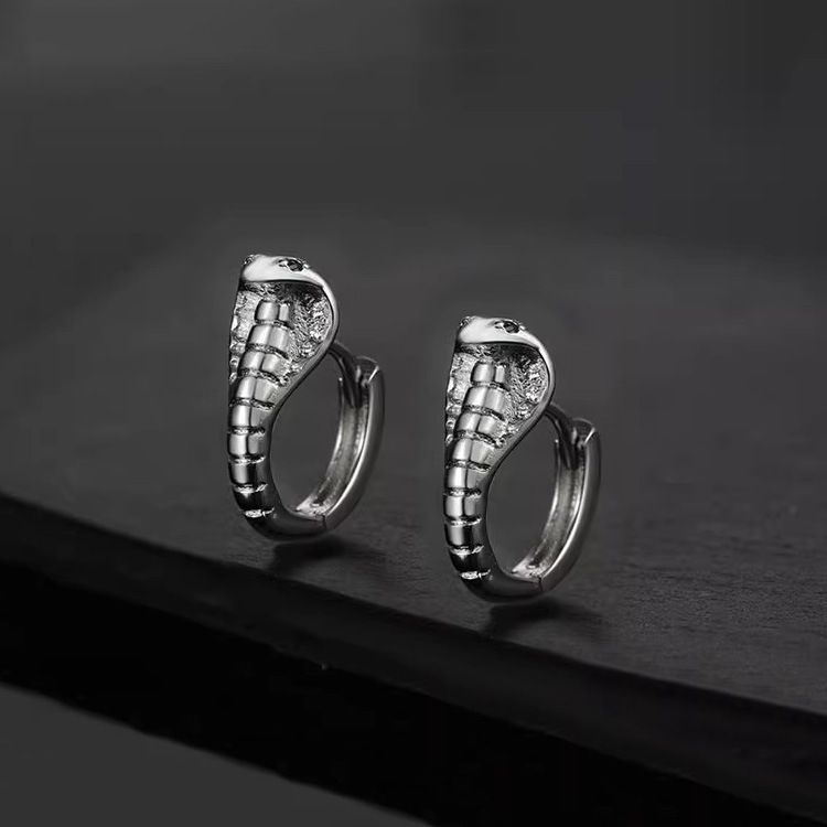 S925 Sterling Silver Cobra Earrings Men's Ins Fashionable Cool Personality Duffy Handsome Bully Snake Ear Buckle Cold Wind Earrings