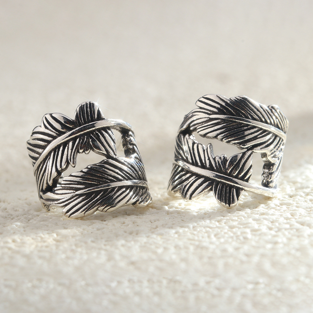 Vintage Feather Ear Clip Men's Trendy Personalized Imitation Thai Silver Hollow Ear Buckle Fashion All-match Men's Ear-less Ear Clip
