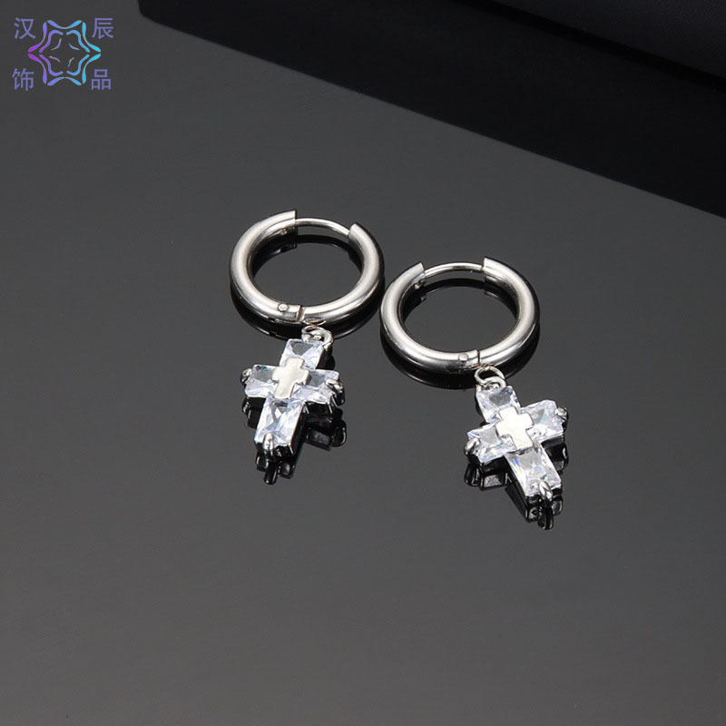 Cross Hao Shi Titanium Steel Non-Fading Earrings Men's Trendy High-End Accessories Women's Versatile Cross-Border Ear Jewelry Wholesale