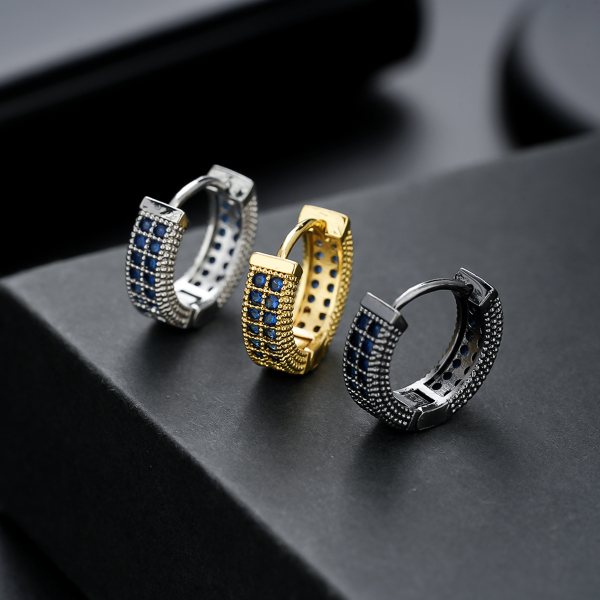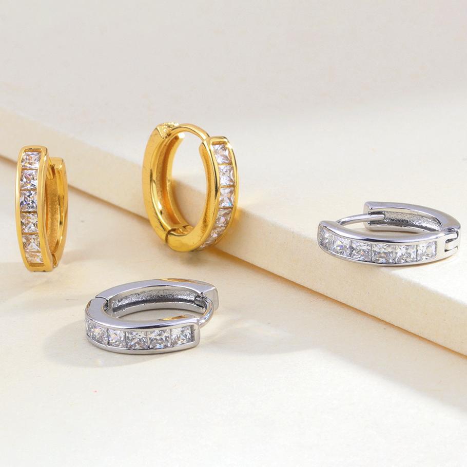Runxin square diamond zircon ear buckle women's fashion flash diamond circle earrings trendy cold style men's single earrings
