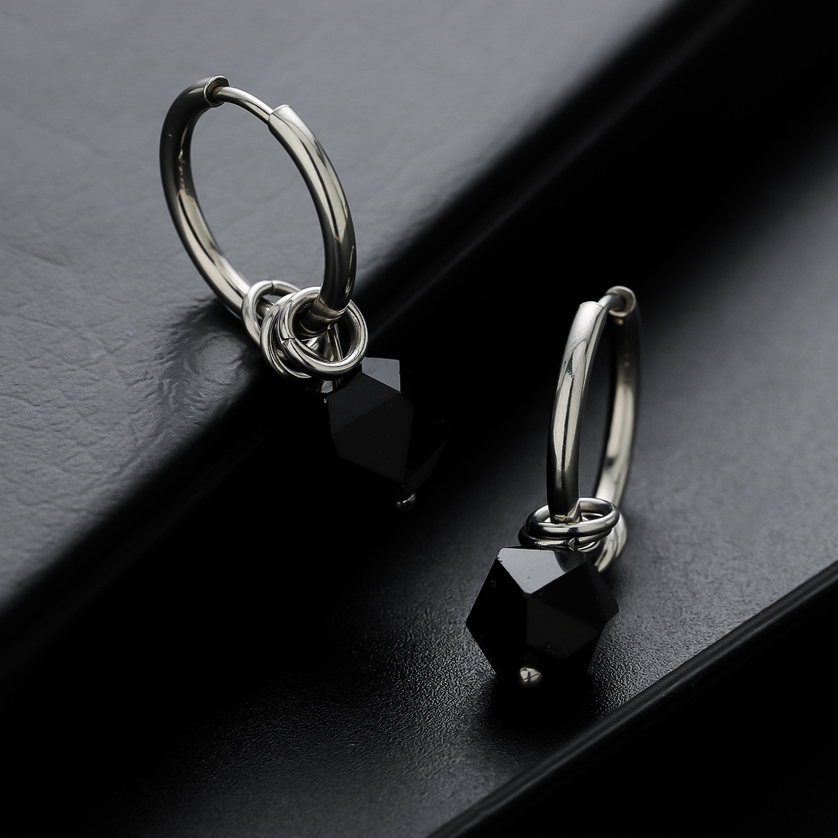 Cross-Border Jewelry Men's Fashion Personality Cross Classic Cool Earrings Stainless Steel Rhombus Hoop Earrings Eh-787