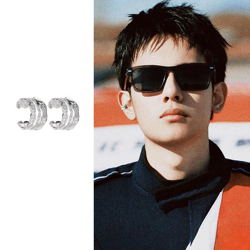 Zircon Wave Double Ear Clip Men's Creative Rhomboid Pattern Earrings Without Ear Holes Internet Celebrity Star Same Style Simple Ear Ring