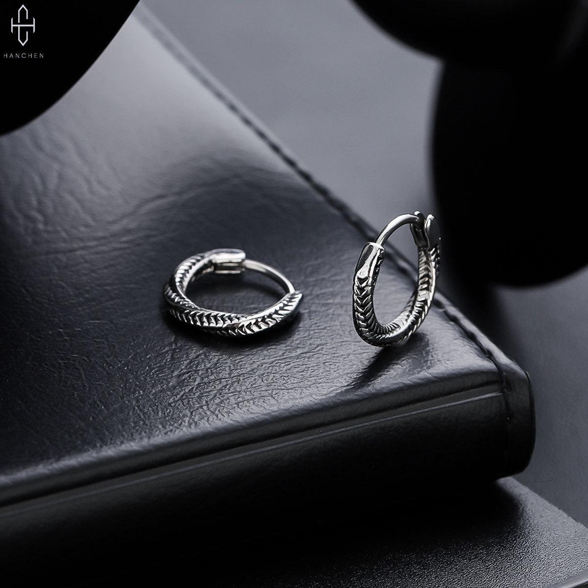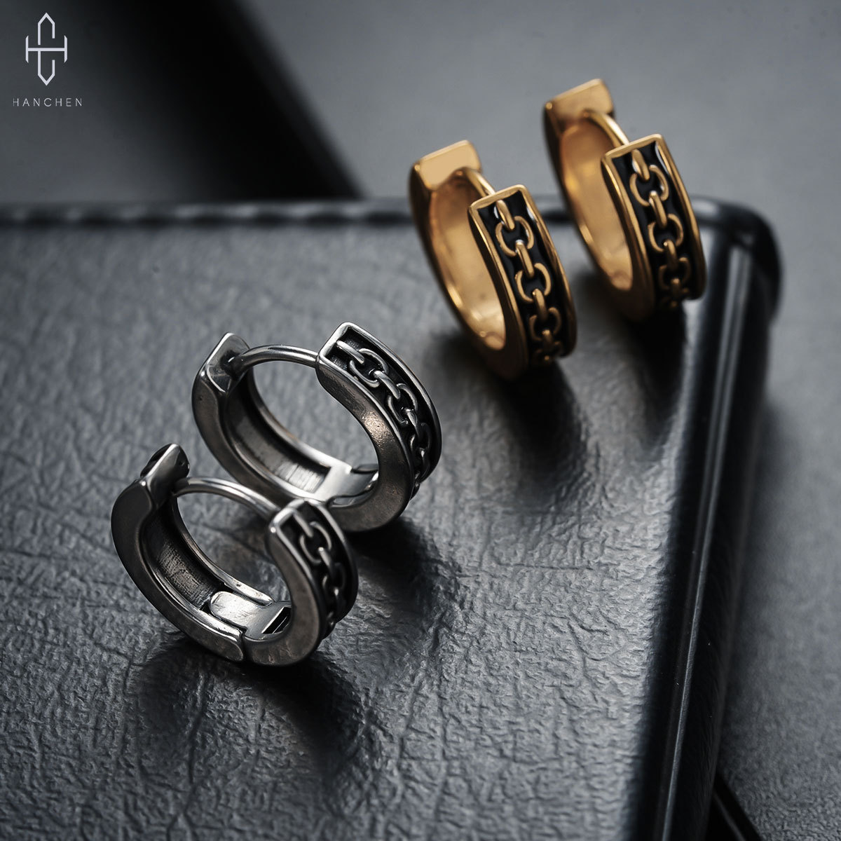 Chain pattern earrings men's non-fading European and American fashion all-match personality earrings retro street earrings women's trendy jewelry