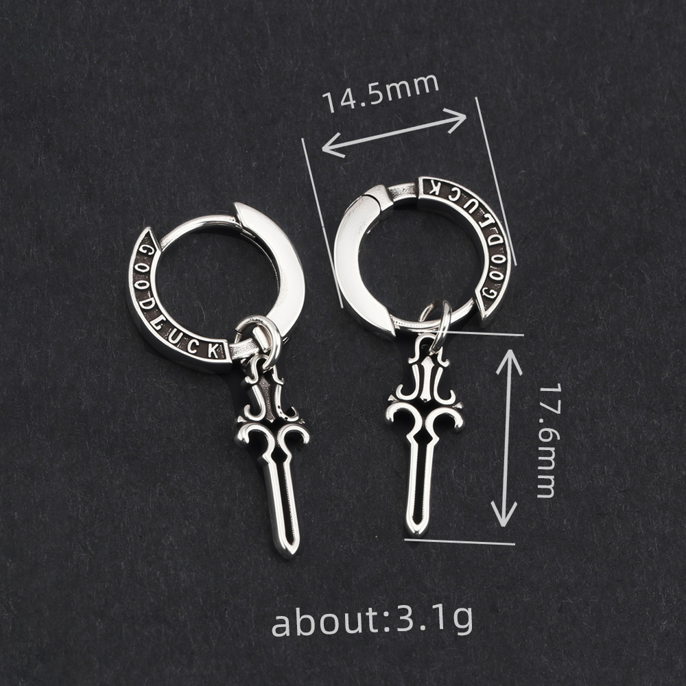 Retro Good Luck Sword Earrings for Men, Trendy Stylish, Hip-Hop Style Letter Earrings, Fashionable Niche Creative Men's Earrings