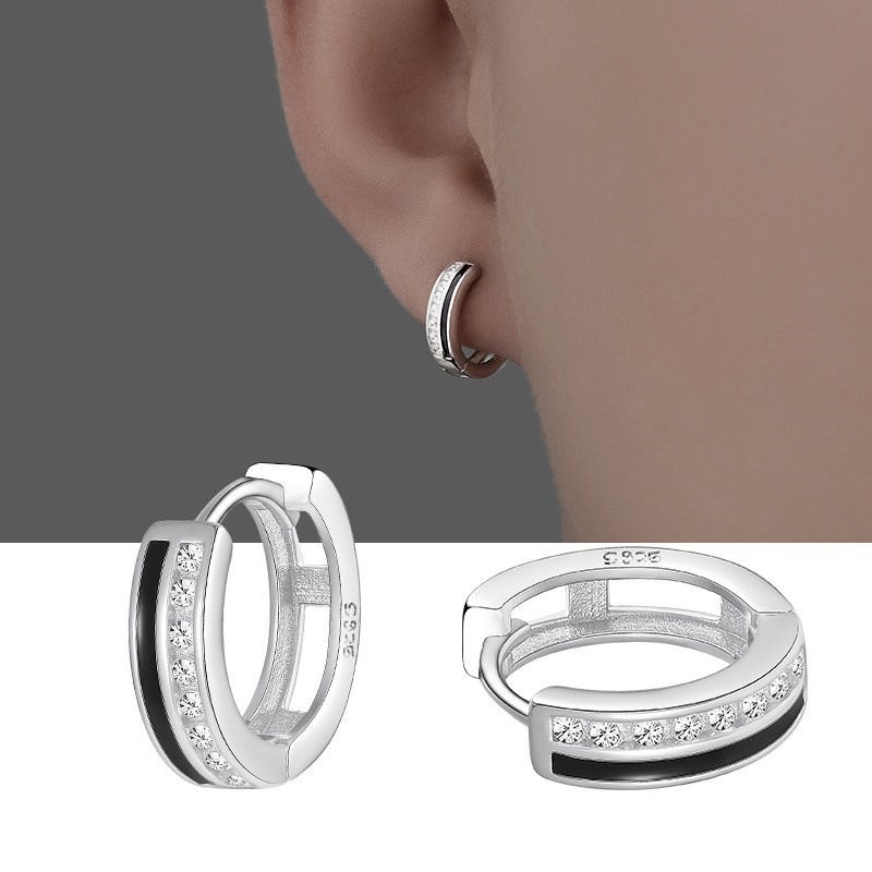 S925 Sterling Silver Black Epoxy Zircon Earrings for Men, Trendy, Cool, Handsome, High-End Ins Stylish, Niche Earrings